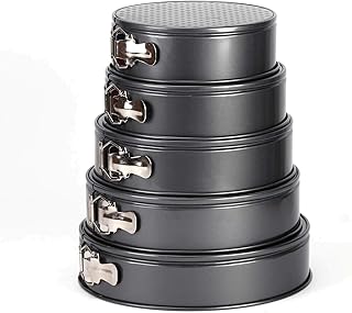 DHOUTDOORS Ronde Moule à Cake Set Plateau-Moule à Gàteau Rond à Charnière Réglable-Moule à manqué Classic Plus 5pcs-Fuite Ressort Forme Moule à Cake avec Fond Amovible