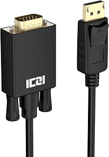 ICZI Câble Adaptateur DisplayPort vers VGA, Convertisseur Plaqué Or 1080P, Mâle vers Mâle, Compatible avec Dell U2414H, ASUS VG248QE, Shinobee PC, Lenovo,etc