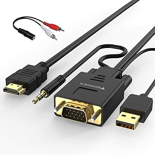FOINNEX Câble VGA vers HDMI 3M(Ancien PC de Style à Nouvelle TV/Moniteur avec HDMI), VGA vers HDMI Cordon Convertisseur/Adaptateur avec Audio pour Ordinateur Portable vers Projecteur,Mâle vers Mâle