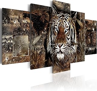 B&D XXL murando Impression sur Toile intissee 200x100 cm cm 5 Parties Tableau Tableaux Decoration Murale Photo Image Artistique Photographie Graphique Animal Animaux Tigre g-B-0024-b-p