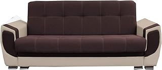 Canapé Convertible 3 Places Tissu et Simili Cuir Lilly (Marron (Tissu et Simili Cuir))