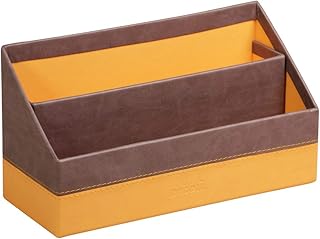 Rhodia 318843C - Porte-Courrier Chocolat - 25x10 cm - Piqûre Sellier, Set de Bureau, Organiseur, Rangement Design - Simili Cuir - Rhodiarama