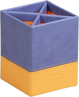 Rhodia 318818C - Pot à Crayons Saphir - 8x8 cm - Piqûre Sellier, Set de Bureau, Organiseur, Rangement Design - Simili Cuir - Rhodiarama