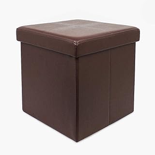 Todeco - Banc Pliant, Ottoman avec Espace de Stockage - Charge maximale: 150 kg - Matériau: Simili-Cuir - Simili-Cuir piqué, 38 x 38 x 38 cm, Marron