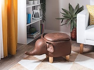 Beliani - Tabouret pour Enfant - Elephant - avec Rangement, en Simili-Cuir, Marron Foncé