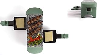 Raclette Grill pour 2 personnes Plaque de cuisson Grill de table Grill électrique Pierre chaude (2 poêles, revêtement antiadhésif, turquoise)