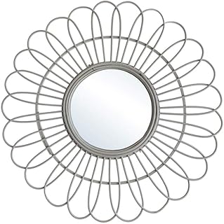 Black Velvet Studio Miroir Flor Round Mural décoratif, rotin, rotin Naturel, Style Ethnique, Nordique, pour Salle de Bain ou Hall d'entrée, Coleur Blanc, 43x43x2 cm.