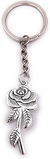 H-Customs Porte-clés Fleur Rose Pendentif en métal argenté