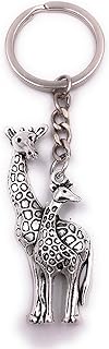 H-Customs Girafe avec Enfant Porte-clés Pendentif en métal argenté