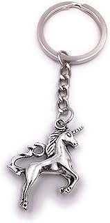 H-Customs Licorne sautant avec Pendentif Porte-clés en métal argenté