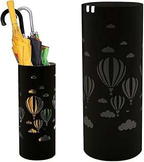 BAKAJI Porte-parapluies en fer design rond noir avec décoration montgolfière et bac anti-gouttes Dimensions 49 x 19,5 cm