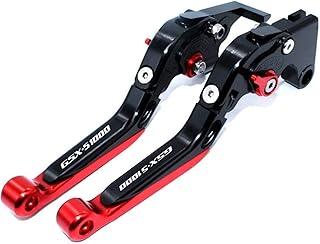 Leviers de frein et d'embrayage pliables et extensibles pour moto Suzuki GSX-S1000/F/ABS 2015 2016 Logo laser (GSX-S1000) Rouge + titane CNC