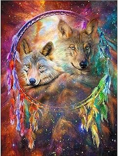 MXJSUA Bricolage 5D Diamant Peinture par numéro Kits Forage Complet Strass Photos Arts Artisanat Maison décoration Murale Dreamcatcher Loups 30x40 cm