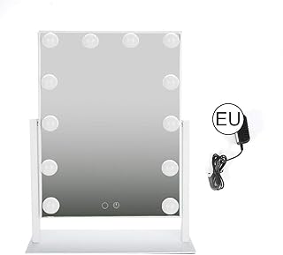 AYNEFY Miroir Lumineux LED Carré Tactile, Miroir Cosmétique Lumineux Doré Miroir de Maquillage de Bureau 12 LED Miroir Lumineux Cosmétique Réglable 360°