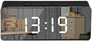 BRISEZZ Horloge Alarme Nuit ThermomèTre HD Miroir RéVeil Multi-Fonction RéVeil NuméRique Mute LED Miroir Horloge Chambre Maquillage (Black)