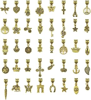 Juanya 40 Pièces Pendentifs Breloques Or Charms Mélange DIY Style Antique Tibétain Accessoire de Bracelet Collier Fabrication de Bijoux Porte-clés Artisanat