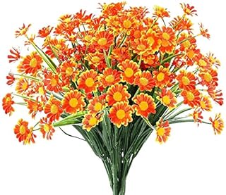 EightSpace Lot de 4 marguerites artificielles en plastique résistant aux UV pour intérieur ou extérieur - Décoration de mariage - Orange