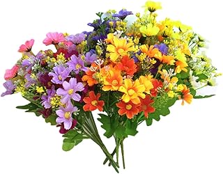 4 Bouquet de Bouquet de Fleurs Artificielles, Faux Marguerite Fleur pour Usage Mariage Maison Jardin Décor Marguerites Artificielles en Plastique Résistant aux UV Artificielles de Marguerite