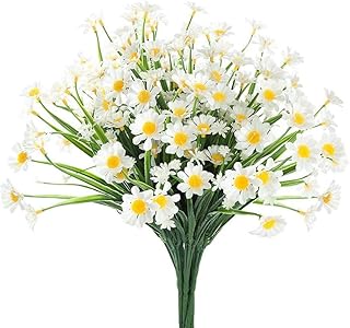 Mazheny Lot de 4 marguerites artificielles pour extérieur, feuillage, plantes artificielles pour fenêtre, maison, mariage, bureau, décoration (Blanc)