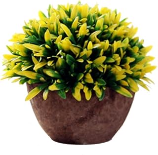 LAAT Artificielle Herbe Fleurs Plante Faux Herbe Plastique Plastique Faux Plantes Artificielles Succulentes Fleur Pot Table Décoration pour Le Mariage Extérieur Bureau Maison Jardin (Jaune)
