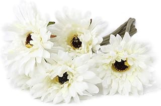 ultnice 5pcs décoratives fleurs artificielles gerbera marguerites artificielles fleur pour mariage Home Décoration (Blanc)