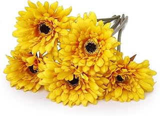 Pixnor Lot de 5 fleurs artificielles gerbera marguerites – Jaune