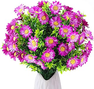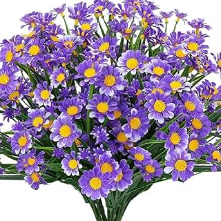 FOREDOO Lot de 6 Marguerites Fleurs Artificielles - Marguerites Artificielles Fleurs en Plein air Fausses Plantes, pour Fenêtre, Boîte à Suspendre, Décoration Intérieure et Extérieure (Violet)