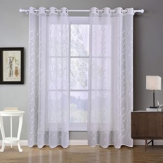 SIMPVALE Rideaux Voilages Transparents - Drapés de Fleurs Broderie Exquis - Rideau de Voile de Fenêtre pour Le Salon Chambre Balcon,1 Panneau (Largeur 140cm / Hauteur 220cm, 2# White)