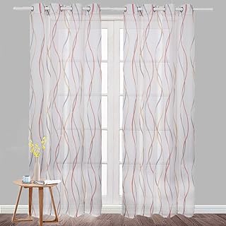 SIMPVALE Lot de 2 Rideaux Transparents à œillets - Élégants Rideaux en Voile à Rayures - pour Chambre à Coucher, Salon, Balcon, Orange, 140x175cm