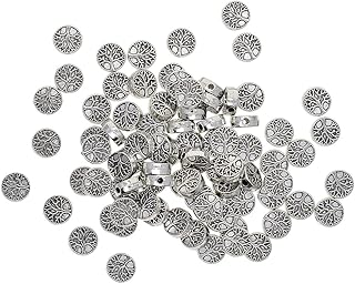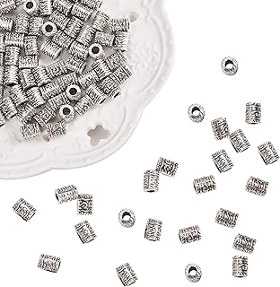 PandaHall Elite - 100 Pcs Perles Intercalaires Perles d'Espacement en Alliage Perle Colonne de Style Tibétain pour la Fabrication de Bijoux Collier Bracelet, Argent Antique, 7x9mm, Trou: 3.5mm