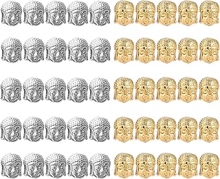 Alliage Perles de Tête Bouddha,Guador 50 pcs Petites Pperles Spirituelles Bouddha en Alliage Perles de Style Tibétain pour la Fabrication de Bijoux Bricolage Bracelet Collier Perles(Or,Argent)
