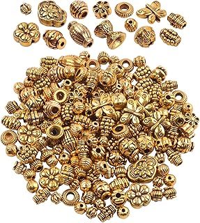 Perles Intercalaires Tibetain, 100g Perles Gros Trou Alliage Perles Espacees Perles Despacement Métal pour Bracelet Collier Fabrication de Bijoux, Or Antique, 150-200pcs