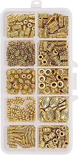 PandaHall Elite - 250pcs 10 Styles Gravure de Perles d'espacement,Perles en Alliage d'argent Tibétain Breloques Dorées Antiques pour Collier Bracelet DIY Fabrication de Bijoux