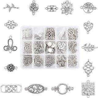 PandaHall Elite - 120pcs 15 Styles Connecteurs Chandeliers Pendentifs Perle Connecteur Sets Tibetain Style en Alliage pour la Fabrication de Bijoux Boucles d'oreilles Collier, Argent Antique