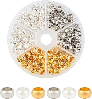 PandaHall 180pcs 3 Couleurs Perles Européennes Rondelle 7m Perles Intercalaires Perles Lâches en Laiton à Grand Trou pour la Fabrication de Bijoux de Bracelet de Collier, Trou: 4.5 mm