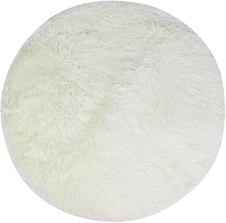 CONMING Rond carré, Tapis de Sol Shaggy Tapis de Tapis Super Doux Tapis Anti-dérapant Tapis Anti-dérapant Tapis de Yoga pour Salon Chambre et Plus Tailles (Blanc,200cm)