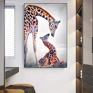 5D DIY Peinture en Diamant Complet Kits Girafe colorée Full Cristal Strass Point de Croix Broderie Diamant Art Pour Adultes and Enfants la Maison Salon Wall Decor Diamond Painting Round Drill 50x70cm